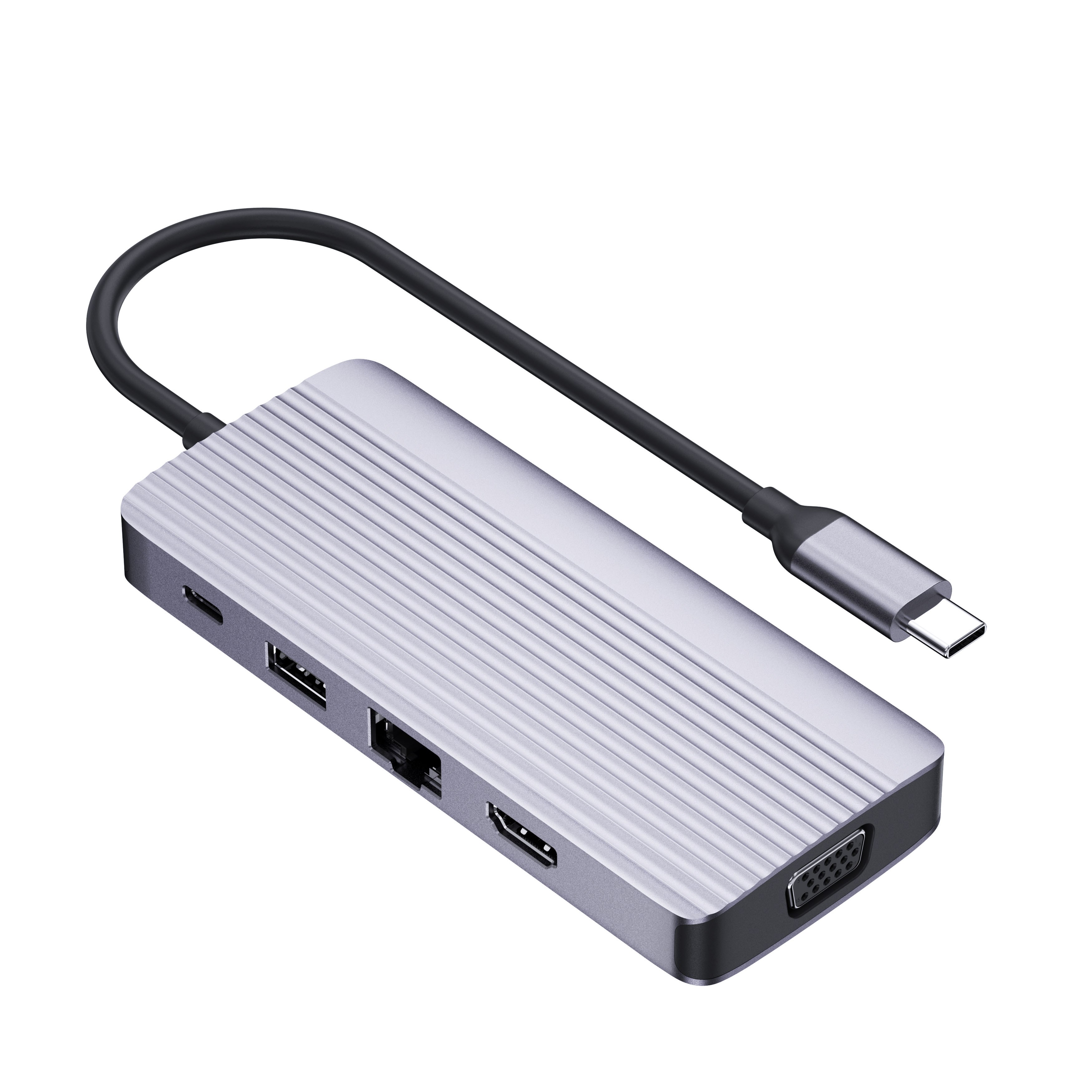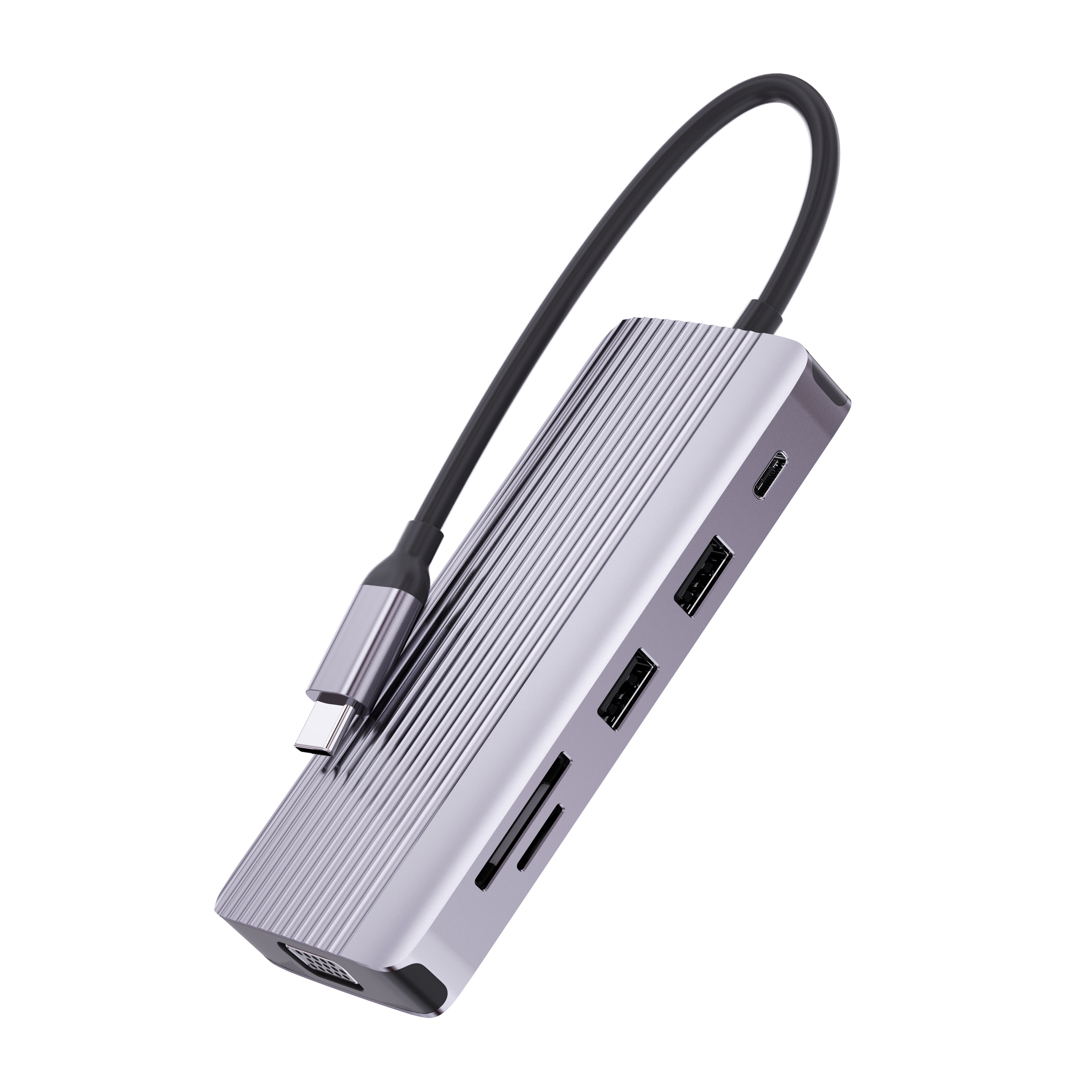 ? 輸出:1×HDMI1.4+1×VGA+3×TYPE C-A(TYPE C3.2 Gen1)+1×TYPE C-C+2×SD/TF3.0+1×TYPE C-C(PD)+1×RJ45(1Gbps)