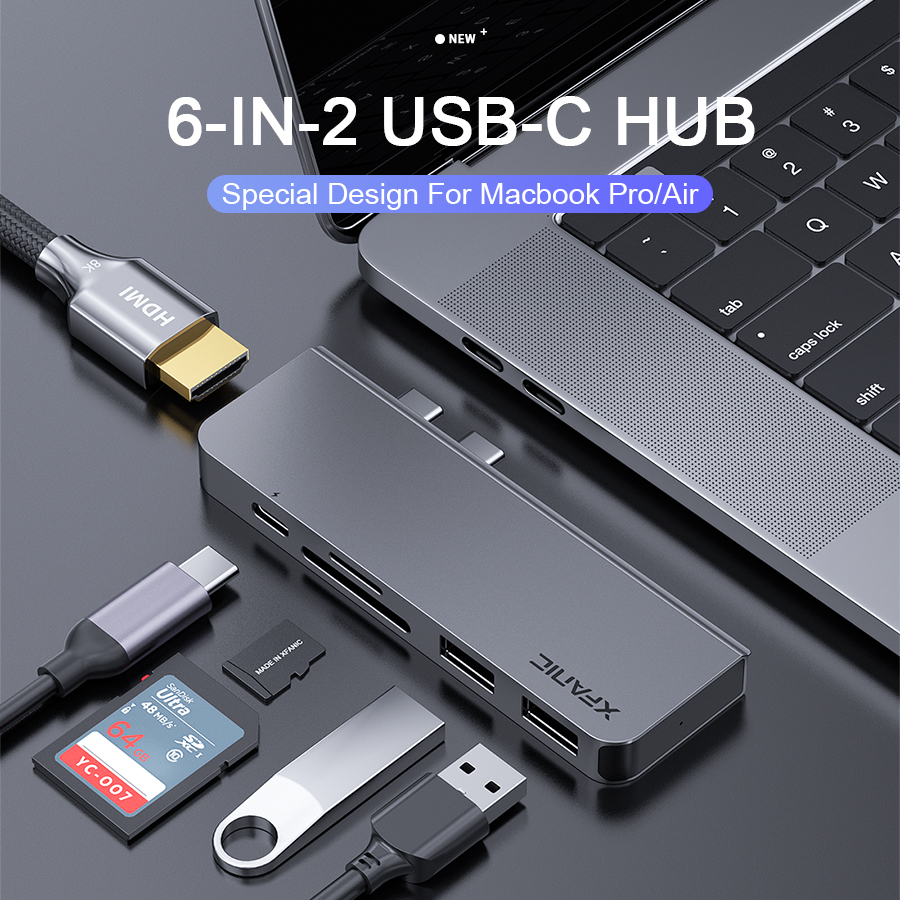 ? 這是一款支持4K雙視頻擴(kuò)展的6合2 Mackbook專用多功能擴(kuò)展塢。