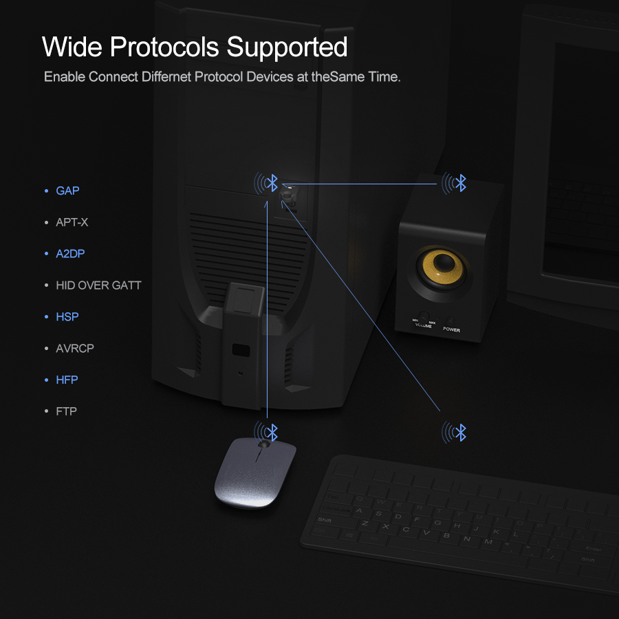 藍牙音箱,藍牙耳機,打印機,游戲手柄,手機,平板電腦,鼠標,鍵盤等; 兼容Windows XP / Vista / 7/8/10